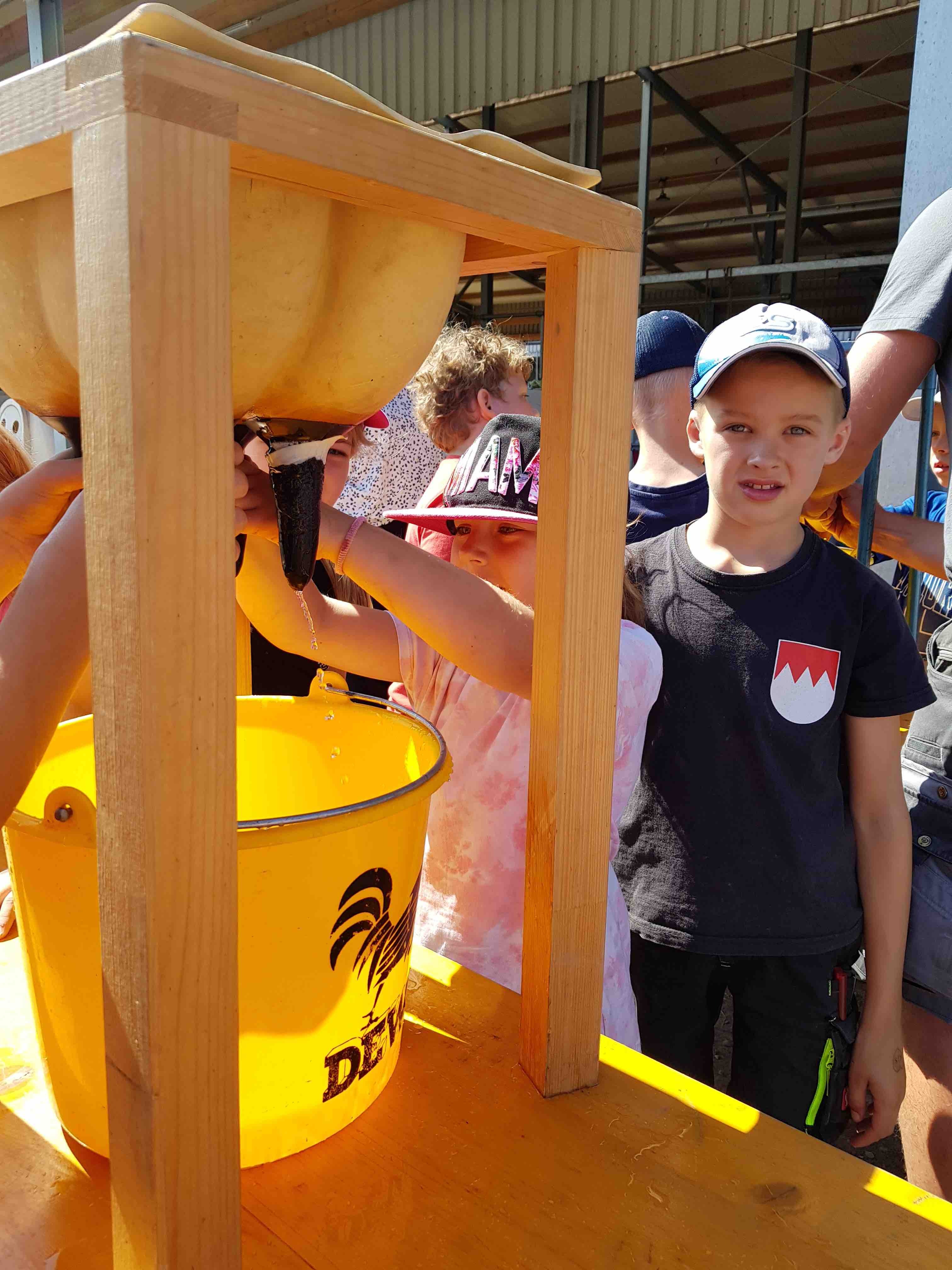 Zwischendurch stärkten sich die Kinder mit Joghurt, hergestellt aus der hofeigenen Milch. Die Schülerinnen und Schüler waren beeindruckt davon, dass sie die Milch der Kühe auf dem Hof direkt in Form von Joghurt genießen konnten.