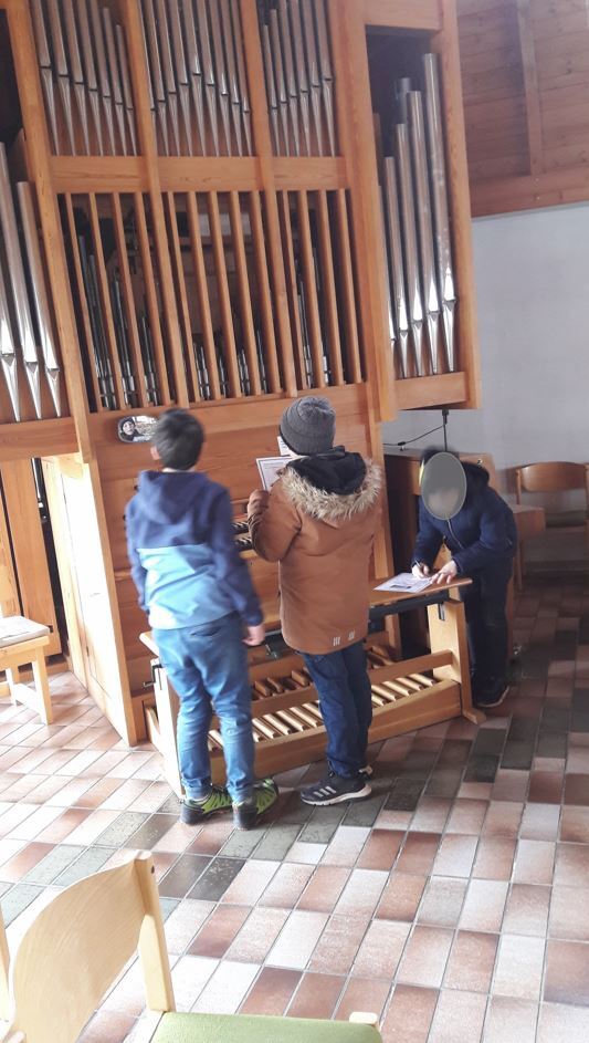 Zuerst bewunderten die Kirchenforscher den großen Kirchturm und schätzten wie hoch dieser ist. Am Eingangsportal entdeckten die Kinder anschließend zwei Fische. Diese brachten sie mit dem christlichen Symbol des Fisches in Verbindung. Nun erkundeten die Drittklässler den Innenraum der Kirche genau. Dabei betrachteten sie beispielsweise den Altar oder das Taufbecken und zeichneten Bilder von beiden. Zudem durften sich die Kinder auch auf die Kanzel stellen. Das war ein tolles Gefühl. Manche Kinder bewunderten dabei auch den Pfarrer, dass er sich traut, dort zu vielen Menschen zu predigen. Auch die Orgel, das Lesepult oder die bunten Fenster wurden von den Kirchenforschern genau erkundet. Zum Schluss suchte sich jedes Kind seinen Lieblingsplatz in der Kirche. So beschrieben sie beispielsweise: „Mein Lieblingsplatz ist die Orgel, weil ich selbst eine Musikerin bin.“ „Mein Lieblingsplatz ist das Taufbecken, weil ich dort auch getauft wurde.“ „Mein Lieblingsplatz ist das Lesepult, weil ich dort Geschichten in der Bibel lesen kann.“