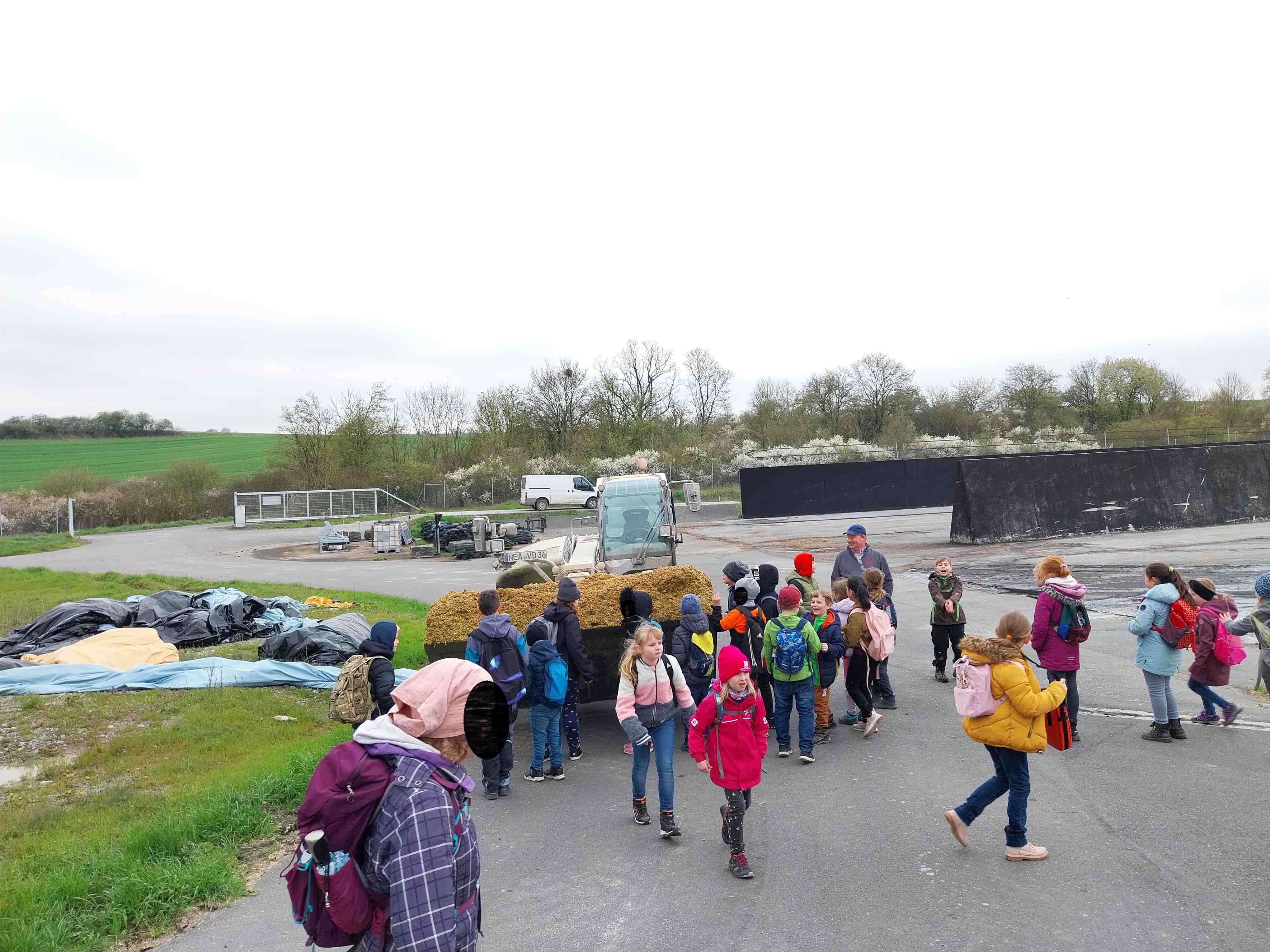 Am 19.04.2023 besuchten die Schülerinnen und Schüler der beiden Klassen die Biogasanlage in Scheinfeld, die auch unsere Schule und das Hallenbad mit Strom versorgt. Herr Wehr und Herr Hofmann nahmen sich viel Zeit, um die genauen Vorgänge bei der Stromerzeugung mit Hilfe von Biomasse den Kindern zu erklären. So bestaunten sie die riesigen Behälter, in denen die Biomasse gewogen wird, blickten durch ein kleines Fenster in den Gärbehälter und staunten schließlich über die Lautstärke im Blockheizkraftwerk. Zum Schluss freuten sich alle Kinder darüber, dass sie Herrn Hofmann bei der „Fütterung“ mit dem Stapler zuschauen durften.