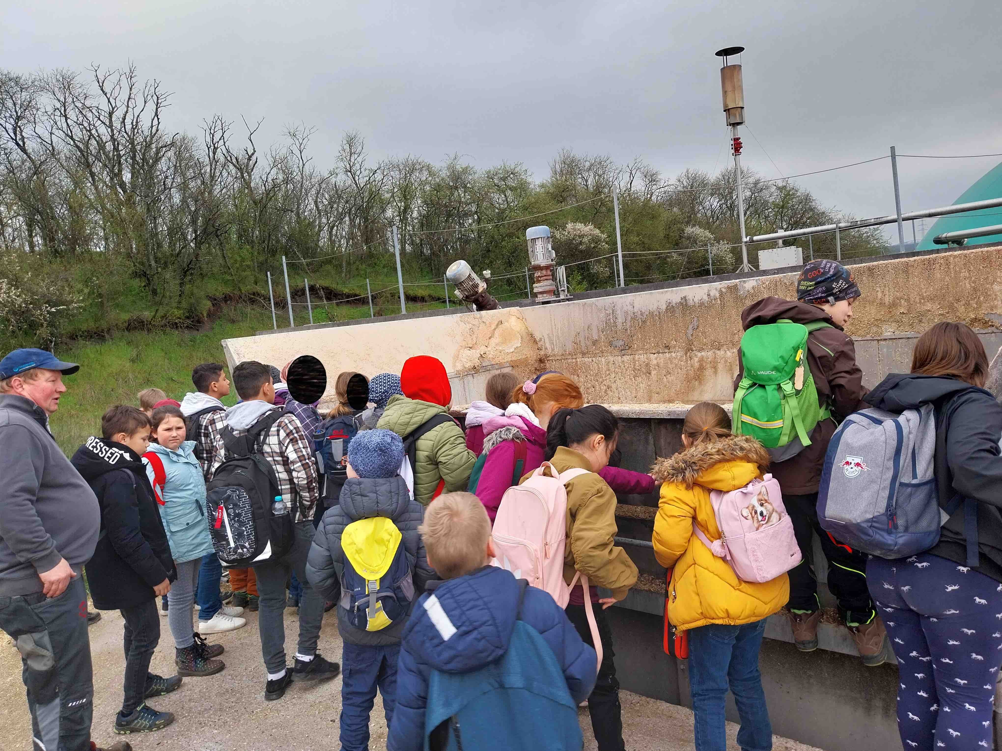 Am 19.04.2023 besuchten die Schülerinnen und Schüler der beiden Klassen die Biogasanlage in Scheinfeld, die auch unsere Schule und das Hallenbad mit Strom versorgt. Herr Wehr und Herr Hofmann nahmen sich viel Zeit, um die genauen Vorgänge bei der Stromerzeugung mit Hilfe von Biomasse den Kindern zu erklären. So bestaunten sie die riesigen Behälter, in denen die Biomasse gewogen wird, blickten durch ein kleines Fenster in den Gärbehälter und staunten schließlich über die Lautstärke im Blockheizkraftwerk. Zum Schluss freuten sich alle Kinder darüber, dass sie Herrn Hofmann bei der „Fütterung“ mit dem Stapler zuschauen durften.