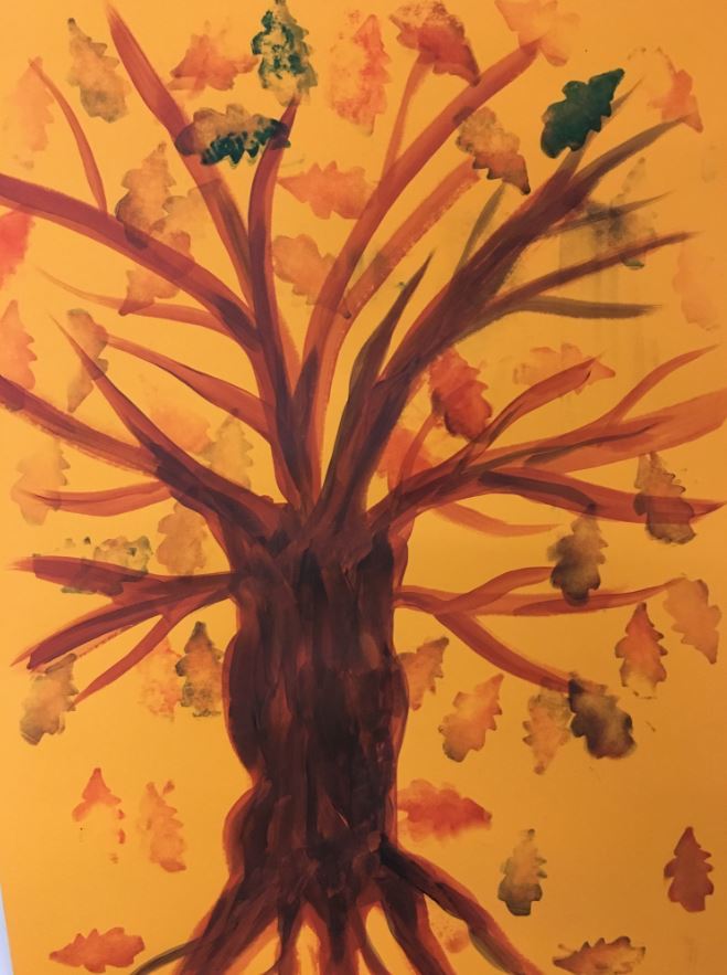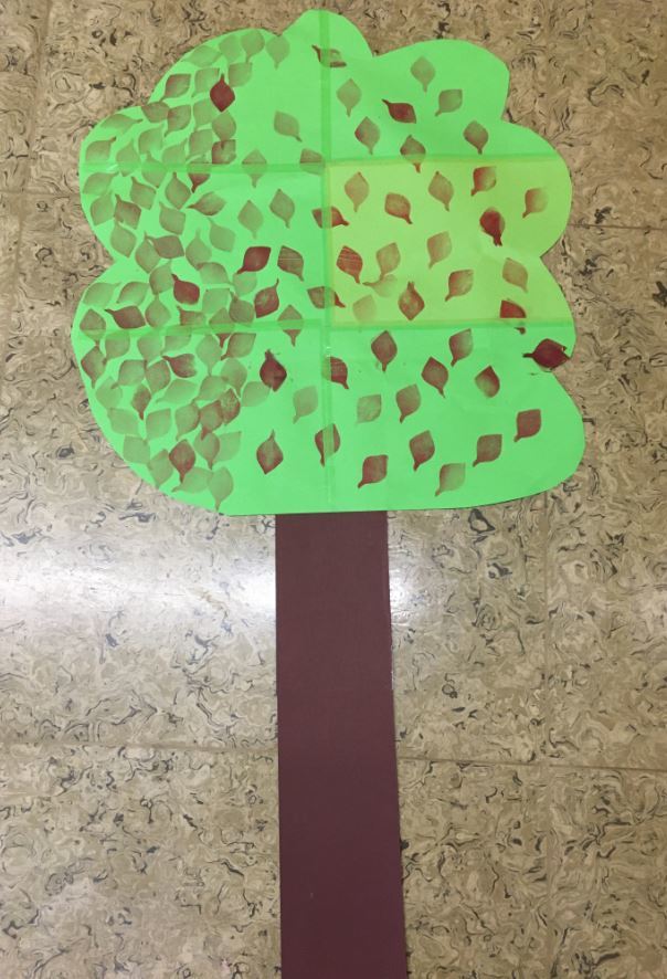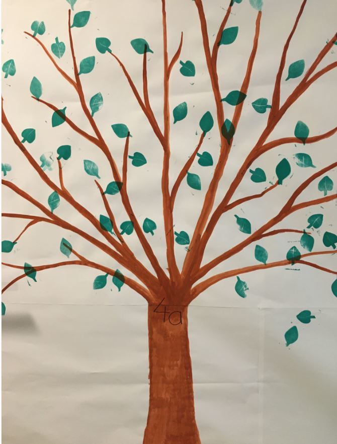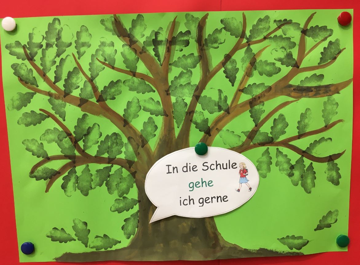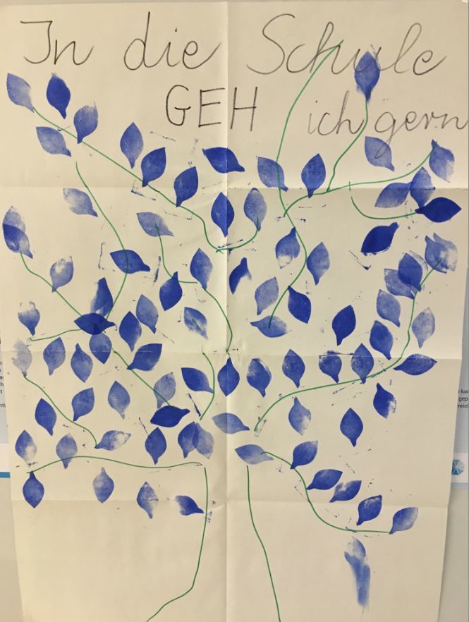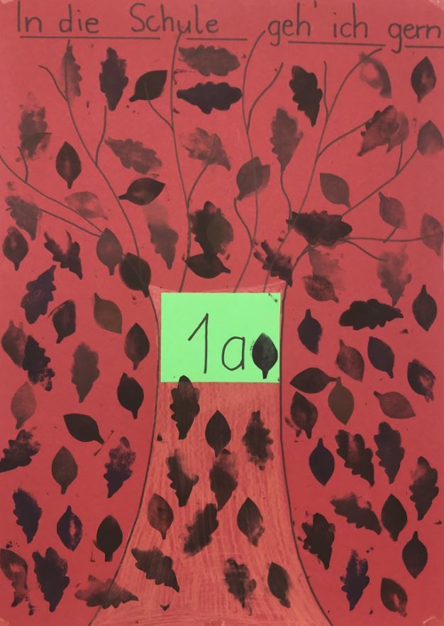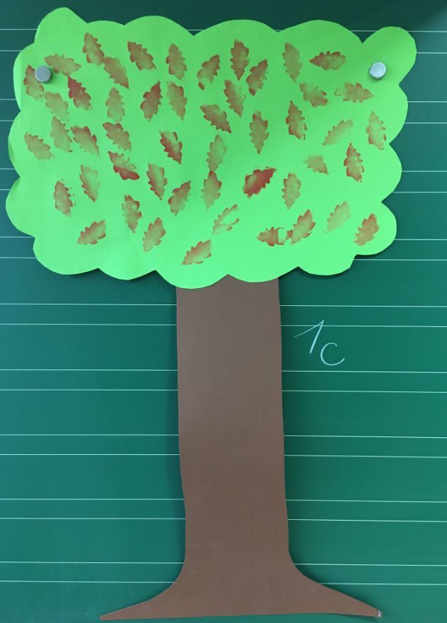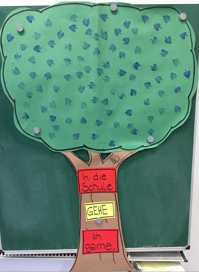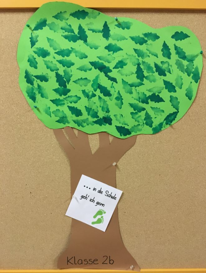Alle Kinder, die aus eigener Kraft – also ohne Auto – zur Schule kamen, stempelten am Klassenbaum ein grünes Blatt dazu. Auch Bus-Kinder, die zur Haltestelle gingen, durften stempeln.