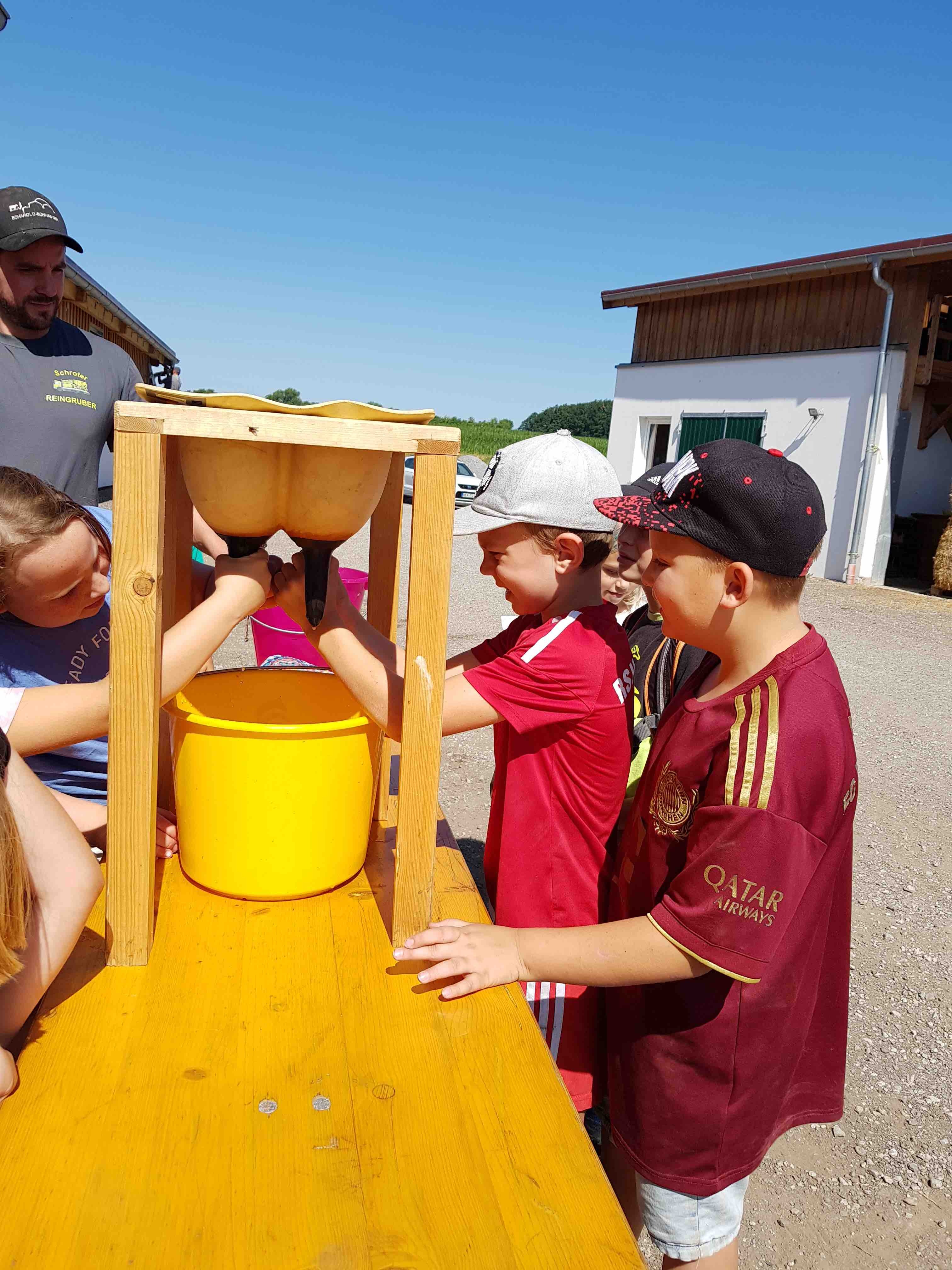 Zwischendurch stärkten sich die Kinder mit Joghurt, hergestellt aus der hofeigenen Milch. Die Schülerinnen und Schüler waren beeindruckt davon, dass sie die Milch der Kühe auf dem Hof direkt in Form von Joghurt genießen konnten.